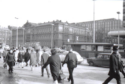 | Jalankulkijoita Kaivokadulla Rautatieaseman kohdalla. Taustalla Ateneumin rakennus. | |