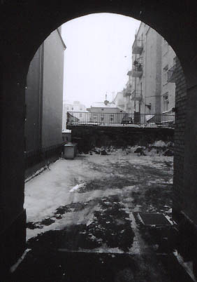 | Talvinen piha Oikokadun liepeillä Kruununhaassa. | |