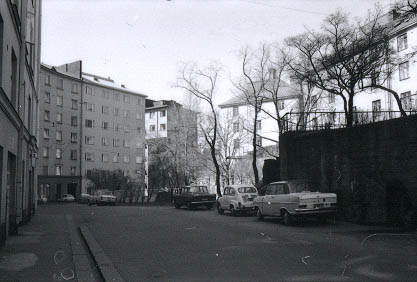 | Näkymä Agricolankujalta Torkkelinkadun suunnalta Franzéninkadulle päin. | |