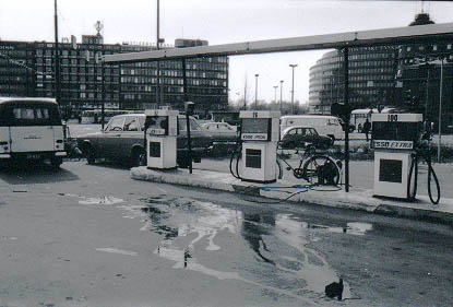 | Poika täyttämässä polkupyörän kumia Esson huoltoasemalla Hakaniemessä. | |