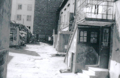 | Puutaloja ja kerrostaloja Fleminginkatu 16:n pihapiirissä Kalliossa. | |