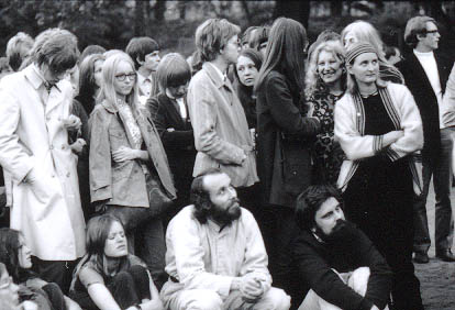| Vietnamin sodan vastaiseen mielenosoitukseen osallistuvia ihmisiä Kaisaniemen puistossa. | |