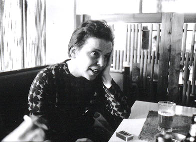 | Kirjailija Tyyne Saastamoinen baarissa Vuosaaressa. | |
