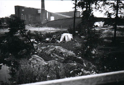 | Irtolaisten telttoja Salmisaaressa Länsiväylän varrella. | |