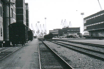 | Makasiineja, junanraiteita ja nostokurkia Katajanokanlaiturilla. | |