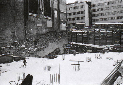 | Luminen rakennustyömaa, entinen Heimolan talon tontti, Hallituskadun (nyk. Yliopistonkadun) ja Vuorikadun kulmassa. | |