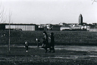 | Ihmisiä Tervasaaressa. Taustalla Kallio. | |