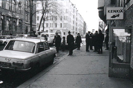 | Poliisi selvittämässä jotain tapausta Liisankadulla. | |