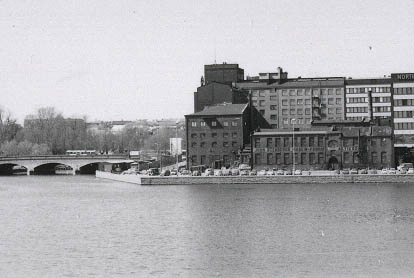 | John Stenbergs Maskin-Fabriks Aktiebolagetin talo Pitkänsillan kupeessa Hakaniemenrannassa Hakaniemen sillalta kuvattuna. | |