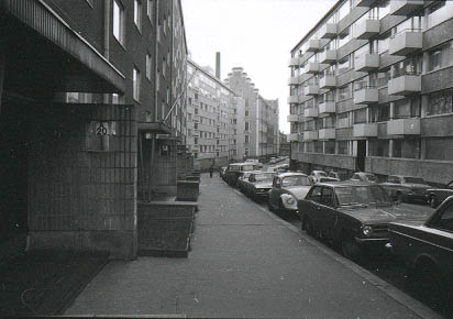 | Näkymä Pursimiehenkatu 20:n edestä lounaaseen Telakkakadun suuntaan. | |