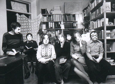 | Loppiaisaaton juhlat Ristalla Liisankatu 7:ssä. Ihmisiä esittämässä naamarit päässä Shakespearen Loppiaisaattoa. | |