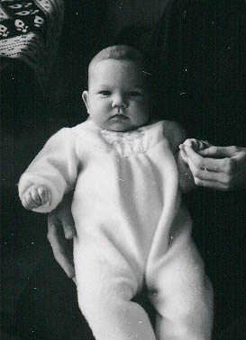 | Muutaman kuukauden ikäinen Kukka Harvilahti äitinsä sylissä kotonaan Kulmakadulla. | |